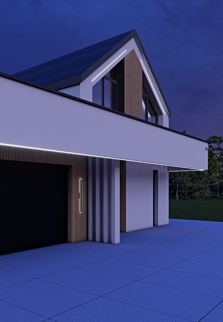 Opracowanie koncepcji estetycznej elewacji na podstawie projektu budowlano - architektonicznego. Usługa obejmuje dobór kolorystyki, materiałów elewacyjnych oraz przygotowanie wizualizacji 3D. Projekt ma charakter wizualny i nie stanowi projektu budowlanego ani architektonicznego w rozumieniu prawa budowlanego.